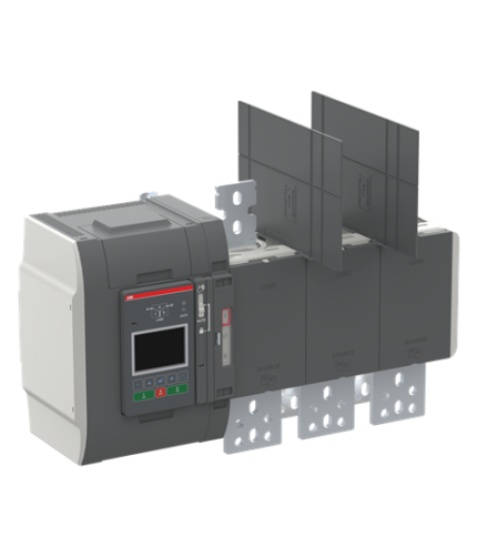 OXB1000E3X3QB, TruONE ATS Seviye 3 kontrolör (LCD), Alttan giriş -Kaynak 1 ve Kaynak 2 bağlantıları altta, yük bağlantıları üstte